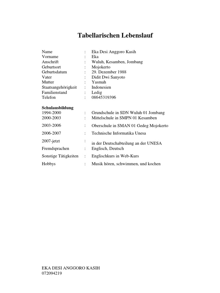 Deutsch Lebenslauf Beispiel Muster Download Englisch Doc Student