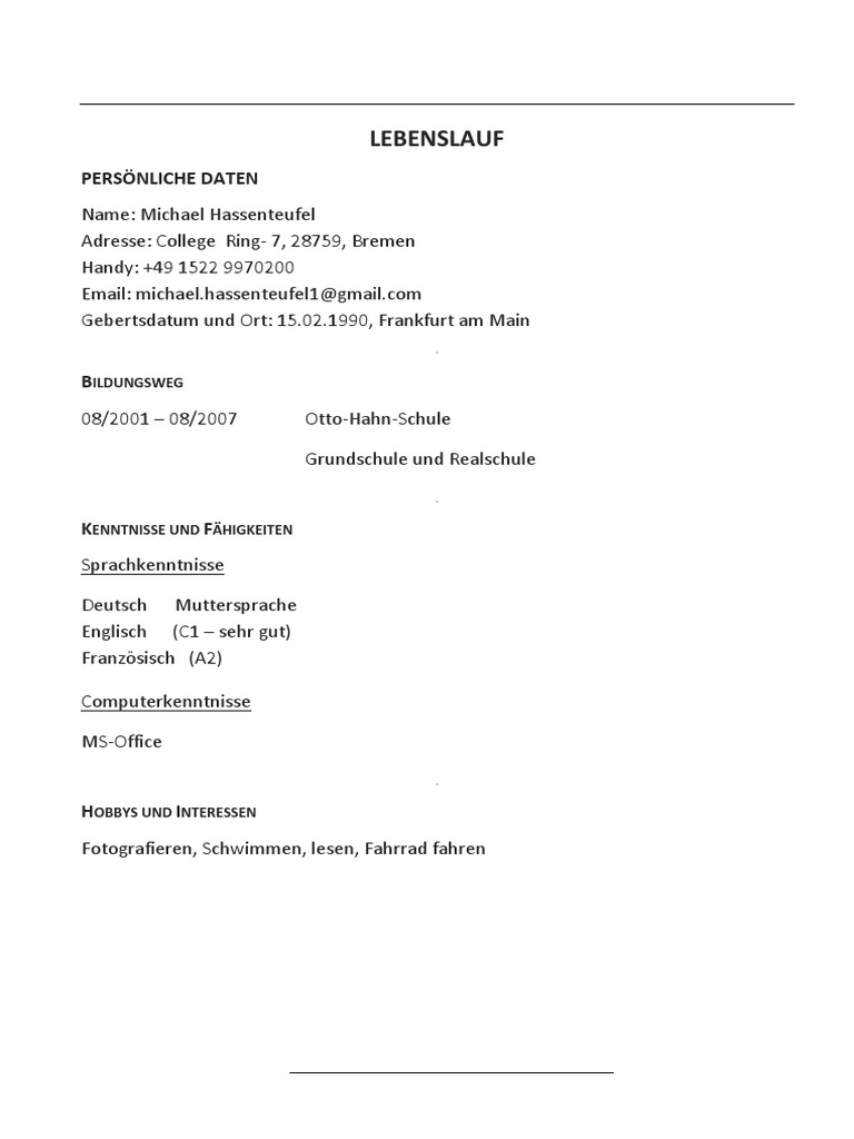Lebenslauf Muster Schuler Ausbildung لم يسبق له مثيل الصور Tier3 Xyz