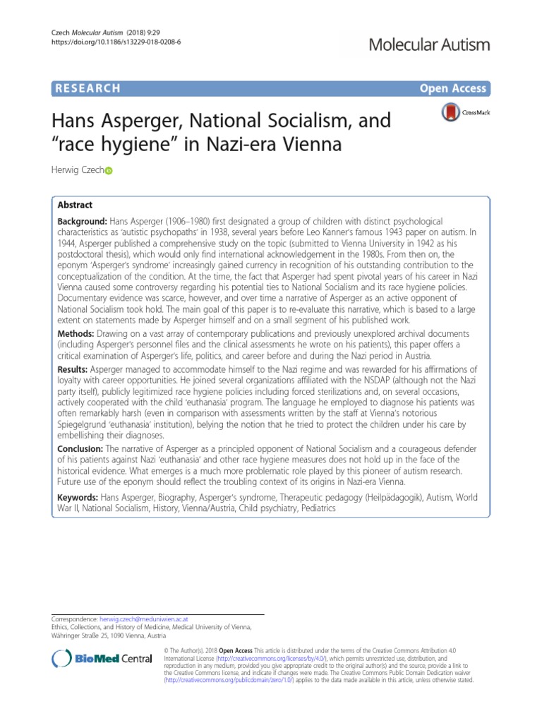 Hans Asperger National Socialism And Race Hygiene In Nazi Era