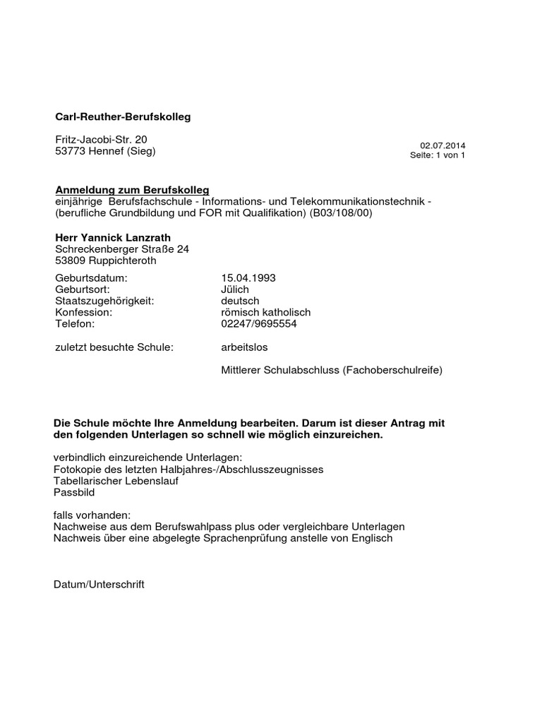 Anmeldungen Rsanmeldungbkschuelerefa 266211 Pdf